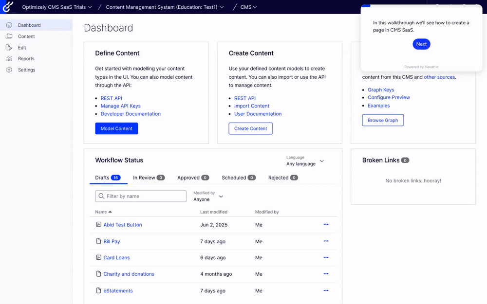 See the following walkthrough to learn how to create a page in Optimizely CMS SaaS.