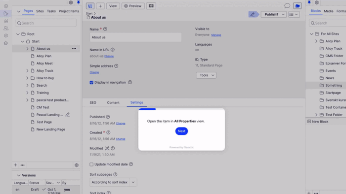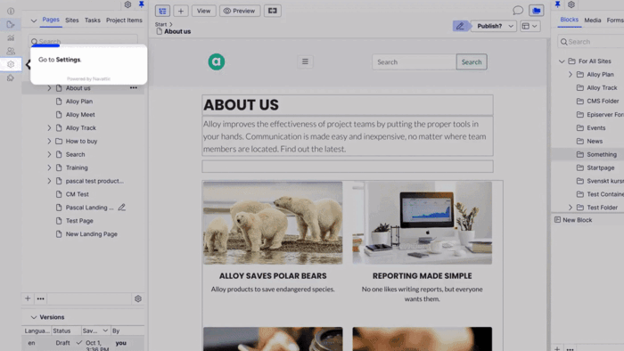**Administrators can set access rights from the **Edit view for specific pages or blocks. Try this demo walkthrough to learn how to set access from the Edit view: