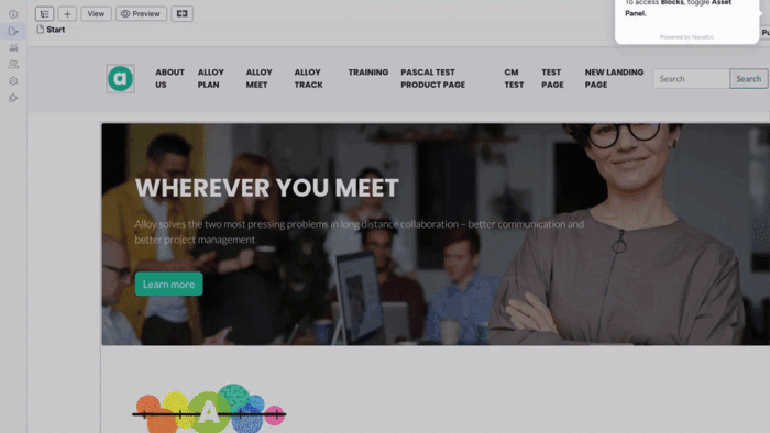 The block types that you see here are specifically for the Alloy sample site. Your website will have block types custom-made to your organization's need.
