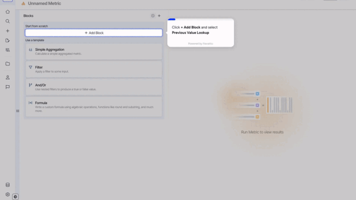 Period vs. previous period block is used to compare a metric between the current and preceding periods. The output is a metric that shows the comparison result or difference between the current periods.